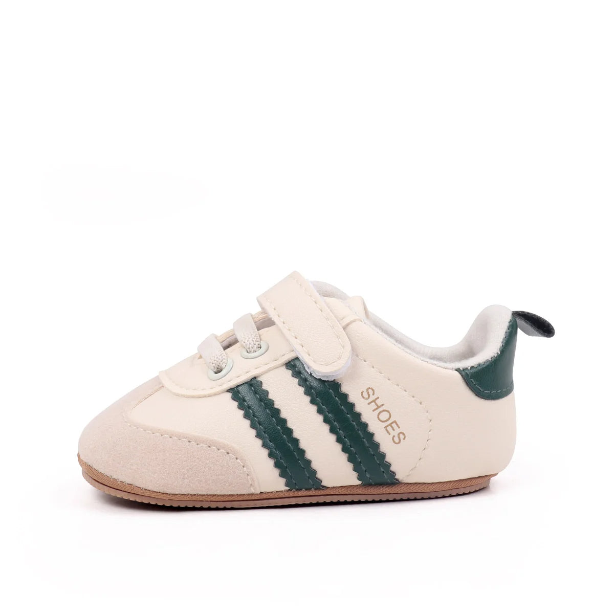 Günlük şehir sneaker’larının modern çizgilerinden ilham alan bu mini model, 0–18 ay arası bebekler için hem konforlu hem de şık bir seçimdir. Yumuşak kumaş ve süet detayları, kolay giydirme sağlayan cırt cırtlı bant yapısı ve kaymaz tabanı sayesinde bebeğinizin ilk adımlarını güvenle destekler.